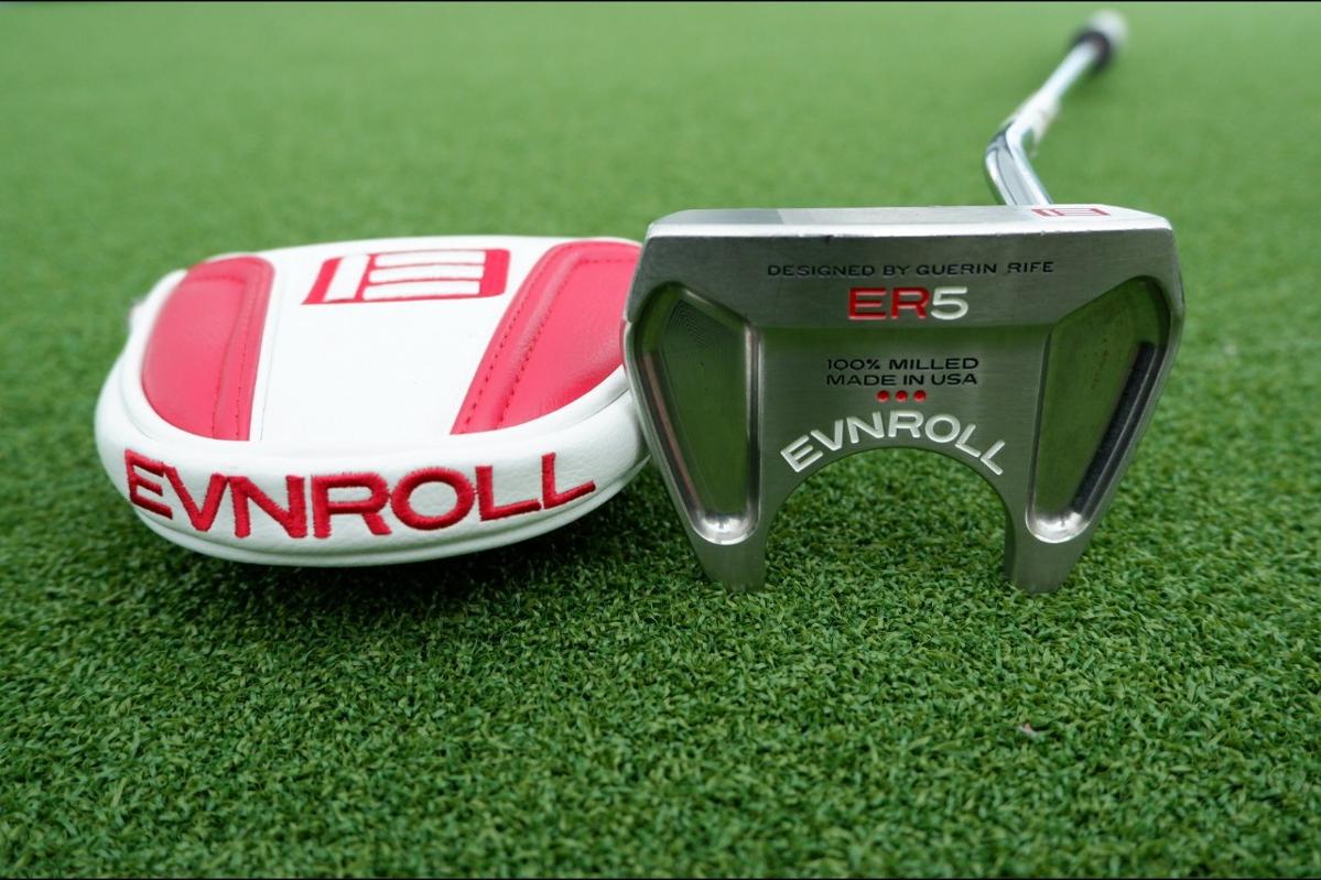 PUTTER EVNROLL ER5 HTCHBACK 34inch MADE IN THE USA ก้าน ความยาว 34 นิ้ว Even Roll Distance ในปี 2016 นักออกแบบ Guerin Rife ได้คิดค้นเทคโนโลยีพัตเตอร์ใหม่ เพื่อมอบประสิทธิภาพที่สม่ำเสมอทั่วทั้งหน้าไม้กอล์ฟ เอฟนอลล์ถือกำเนิดขึ้น ช่องรูปตัว V